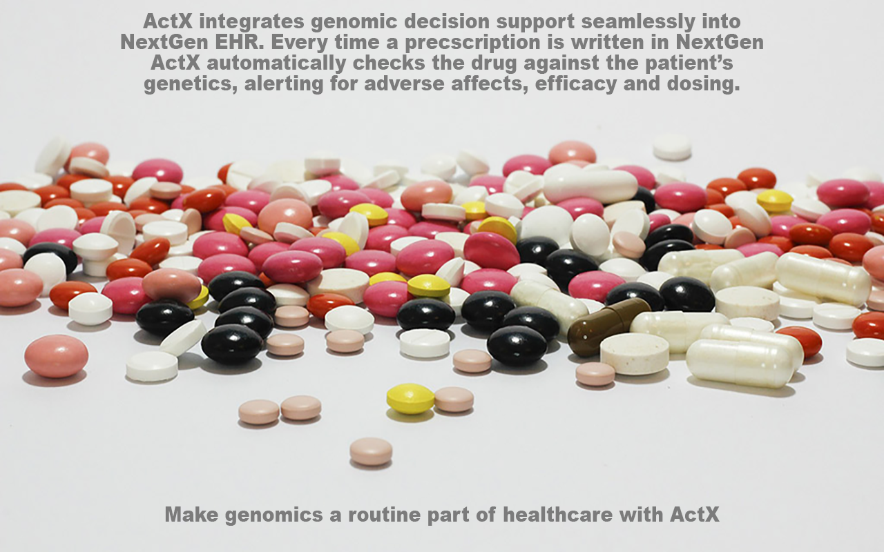 Personalize patient care in NextGen EHR with Genomic Decision Support from ActX. ActX makes it possible to bring the power of genomics into your practice, beginning the era of precision medicine. ActX focuses on genetic risks where there are actions that you can take, providing straightforward, evidence-based clinical recommendations. ActX has partnered with NextGen to make these insights available in your normal workflow.
