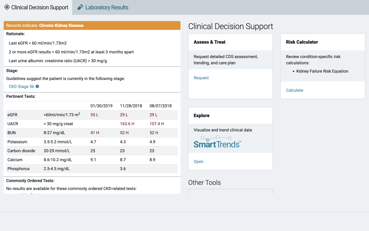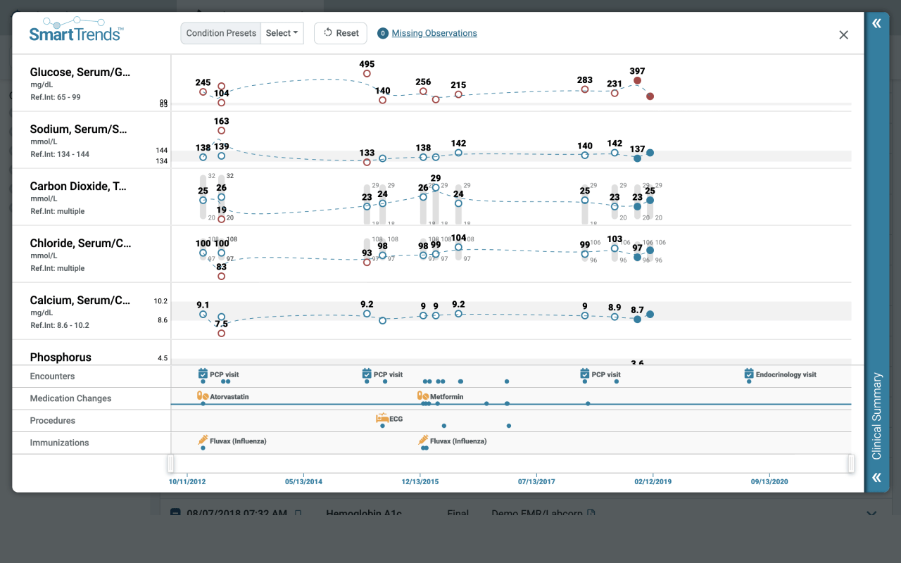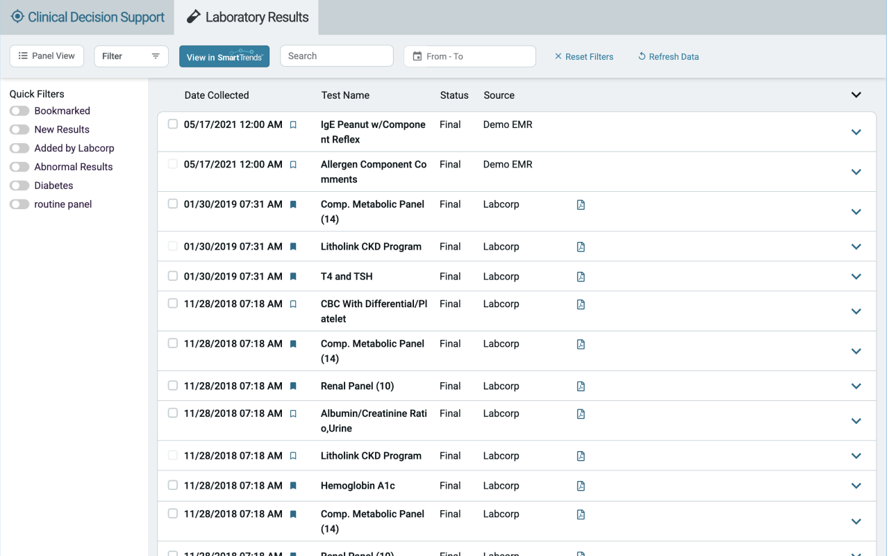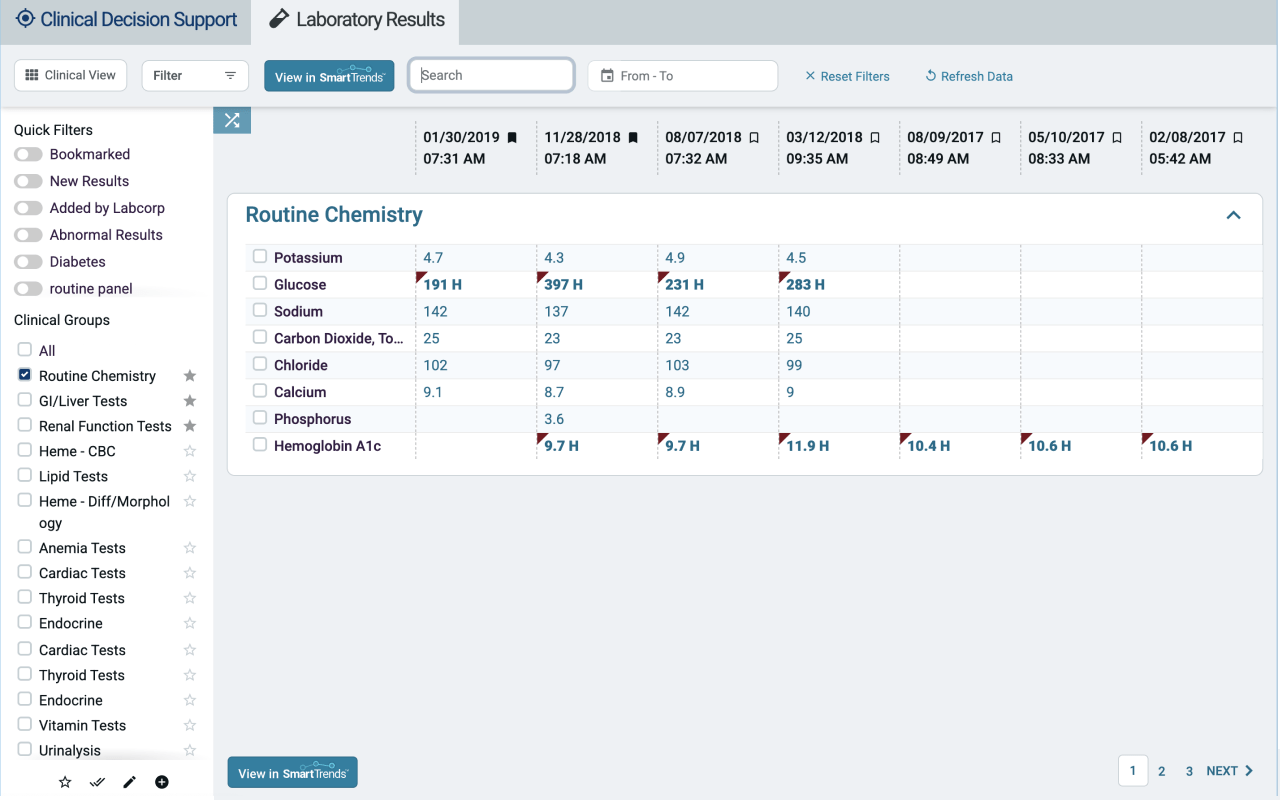 • SmartTrends™ displaying the patient’s laboratory data from Labcorp and clinical data from the NextGen EHR in a single, longitudinal view to give a clear picture of the patient’s clinical course.